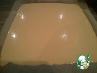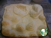 Отправить противень в разогретую духовку минут на 20. Готовый блин неровный, сильно вздувшийся. Это не страшно, при остывании он подровняется. |
