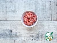 Смешайте говяжий фарш с жареным луком и чуть взбитым яйцом, посолите и поперчите, перемешайте до однородности. |