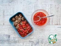 Убавьте температуру в духовке до 170 °С. Переложите фрикадельки вместе с выделившимся соком в глубокую форму для запекания, залейте томатным соусом и верните в духовку на 15 мин. Подавайте горячими. |