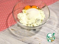 К творогу добавляем яйца, сахар. Хорошо блендерим, до однородной, гладкой консистенции. |