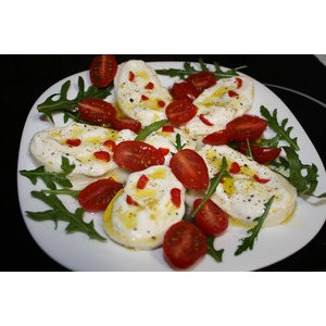 Пикантная моцарелла очень вкусна просто с хлебом и овощами.