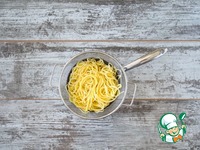 Одновременно поставьте вариться спагетти – в большой кастрюле с подсоленной кипящей водой. Варите согласно инструкции на упаковке. |