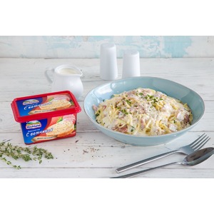 Описание: Спагетти с беконом и сырным соусом от Hochland.