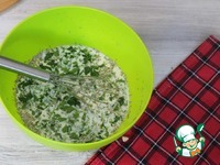 Яйца смешиваем с молоком. Солим, перчим, добавляем мускатный орех, прованские травы. Нарезаем петрушку. Добавляем в яичную смесь, перемешиваем. |
