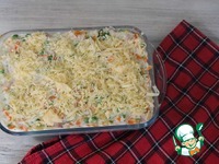 Через 15 минут достаем, посыпаем оставшимся сыром и отправляем опять в духовку |