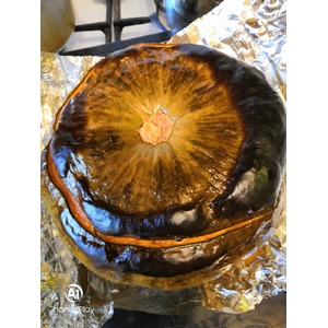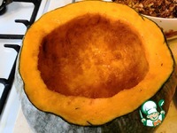 Тыкву помыть, обсушить, срезать верх как крышку. Семена извлечь ложкой. Внутрь тыквы смазать кулинарной кисточкой смесью масла расти., перца и соли. Пока смазка впитывается в тыкву, готовим остальные продукты. Из мяса делаем фарш, добавляем курдючный жир, (курдючный жир очень хорошо работает с говядиной, можно использовать любой жир который нравится вам.). мелконарезаный лук и кинзу. Картофель чистим и режем на тоненькие брусочки. Перец нарезать мелкими полосками. Все ингредиенты кроме картофеля и перца болгарского смешиваем очень хорошо с мясным фаршем. Картофель нарезанный брусочками обжариваем до золотистого цвета на сковороде на растит масле. Теперь осталось собрать все продукты в тыкву. Кладём фарш, затем один слой жаренной картошки и один слой перца. затем снова фарш и слой картошки с перцем. Последний слой должен быть фарш. Накрываем тыкву крышкой срезанной из этой же тыквы, кладём на противень и отправляем в разогретую до 180* духовку на 70 минут. Ориентируйтесь по своей духовке. Противень с тыквой лучше поставить на среднюю полку. |