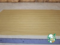Раскатываем в пласт толщиной 5 мм. Нарезаем полосками шириной 3 см и длиной 60-70 см. |