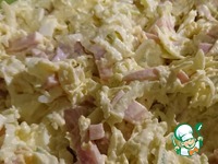 Существует огромное количество рецептов салатов с редькой, я хочу предложить наш вариант салата, который мы сотворили буквально из того что было. А было у нас: редька, яйца, ветчина и майонез (исключительно домашний).