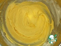Соединить яйца и масло с сахаром, взбить до однородности. Добавить муку с разрыхлителем, перемешать. |