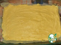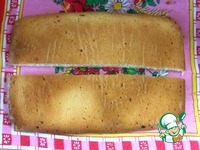 Готовый корж разрезать на две равные части. По краям тесто обрезать. |