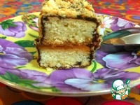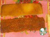 Одну часть коржа хорошо промазать джемом. У меня яблочный. Ещё очень вкусно получается с клубничным и вишневым. Накрыть вторым коржом. Оставить на пару часов для пропитки. |
