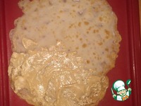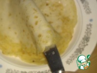 Испечённые блинчики намазать этой смесью, размазывая по площади одной половины блинчика. |
