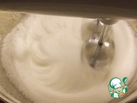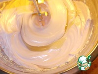 Продолжая взбивать надо влить сироп тонкой струйкой в миску с кремом. |