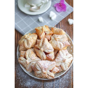 Выпекать до румяной корочки. Готовые остывшие слойки посыпать сахарной пудрой. |