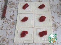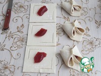 Лист теста раскатать, вырезать квадраты размером 10-12 см. |