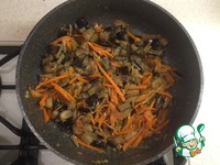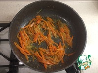 На отдельной сковороде обжарить лук и морковь, добавить соевый соус. Я добавляю щепотку сахара для бОльшего раскрытия вкуса. |
