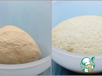 Подошедшее тесто выложить на рабочую поверхность, присыпанную мукой, обмять, разделить на 16 частей (примерно по 30 г) |