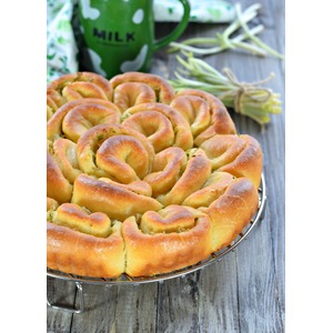 Описание: Аромат черемши ассоциируется у меня с наступлением весны. Как только на рынке появляются пучки этой весенней травки, обязательно покупаю ее и готовлю с ней всевозможные блюда. Предлагаю вашему вниманию разборный пирог (или булочник, как больше нравится) с черемшой. Душистый, воздушный, румяный... Красивый и очень вкусный. Попробуйте! Пусть и в вашем доме пахнет весной.