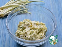 Черемшу измельчить и смешать с размягченным сливочным маслом. (оставшиеся 70 граммов) Можно немного подсолить чесночное масло, это дело вкуса. |