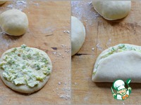 Каждую раскатать в лепешку толщиной 0,5-0,6 см. Смазать равномерно чесночным маслом, сложить пополам... |