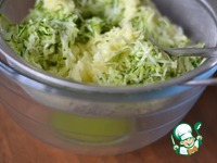 Я выкладываю тертый картофель и цуккини в дуршлаг, чтобы стекла лишняя жидкость. Еще и ложкой слегка придавить. |