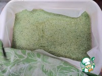 Духовку разогреваем до 200*. Форму (большую и прямоугольную) застилаем бумагой для выпечки, слегка смазываем растительным маслом. Выливаем и разравниваем кабачковое пюре. Выпекаем 20 минут. |