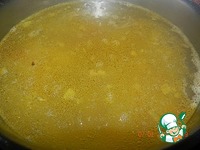 Переложить зажарку в кастрюлю и залить 2,5л. кипятка. Варить наш суп до готовности картофеля и риса (около 15 минут). |