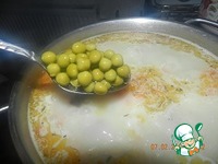 Описание: Быстрый сытный супчик с куриными сердечками со вкусом сливочного сыра и зеленого горошка.