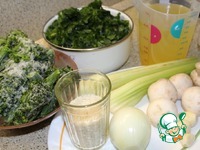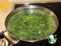В кипящий бульон положить брокколи и шпинат. Довести до кипения. |