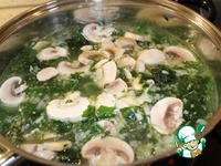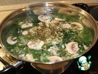 Далее грибы, провариваем еще 10 минут после закипания. |