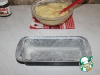 В форму выкладываем 1/3 теста. Сверху выкладываем половину шоколадной пасты нутелла. |