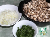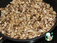 К луку добавляем грибы, продолжаем жарить на среднем огне до мягкости грибов. |