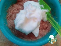И затем осторожно смешать их с мясной массой (как в бисквите). |