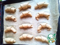 Выкладываю на противень с пергаментом и выпекаю в разогретой духовке при 180 градусах до золотистого цвета, примерно 15-20 минут У меня получилось два таких противня рогаликов. |
