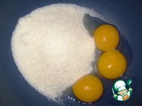 В отдельной миске взбить сахар с желтками (белки убрать в холодильник). |