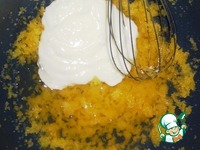 Добавить цедру и сок из половины апельсина и цедру из половины лимона. |
