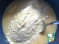 Постепенно всыпая мучную смесь, перемешать тесто до однородного состояния. |