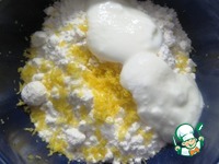 Для глазури: тщательно смешиваем сахарную пудру, цедру из половины лимона и йогурт. |