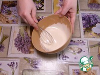 Добавляем воду и растительное масло. При помощи венчика перемешиваем до однородного состояния. Консистенция жидкой сметаны. Убираем в холодильник на 15 минут. |