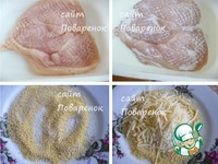 Куриную грудку посолить, поперчить. Обвалять куриную грудку с двух сторон в смеси, плотно прижимая. Пекарскую бумагу смазать оливковым маслом. |