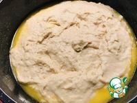 Вынуть форму из духовки, положить сливочное масло, чтобы растопилось и выложить тесто, немного разровнять. |