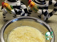 Сыр натираю на крупной терке, взбиваю вилкой сливки с яйцами, смесь немного подсаливаю. |