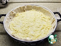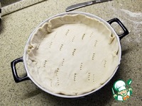 Раскатываю пласт теста в круг, с учетом высоты бортов, выкладываю в смазанную маслом форму, формирую бортики из теста и накалываю. |