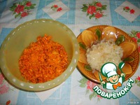 Лук и морковь обжарить отдельно до готовности на растительном масле. |