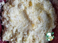 Творог ( у меня не мокрый, но и не очень сухой) размять толкушкой. |
