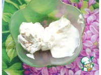 Готовим заправку. Смешиваем сметану и творожный сыр. |