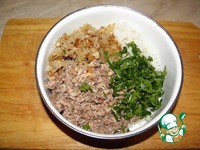 Готовим начинку: Лук мелко нарезать. Обжарить на небольшом количестве масла |