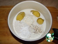 Делаем заливку: яйца, молоко, муку, майонез, специи, разрыхлитель - все соединяем |