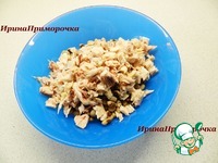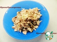 Приступаем к приготовлению салата. Куриное мясо мелко нарезаем.
