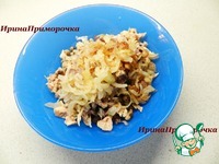 Луковицу нарезаем четвертинками и тонко шинкуем. Обжариваем лук в масле до прозрачности и золотистости.